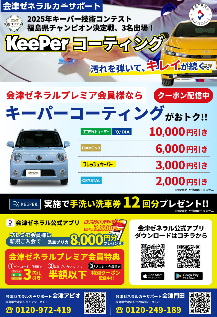 会津ゼネラルプレミア会員様には、KeePerコーティング各種を特別価格でご提供中です!